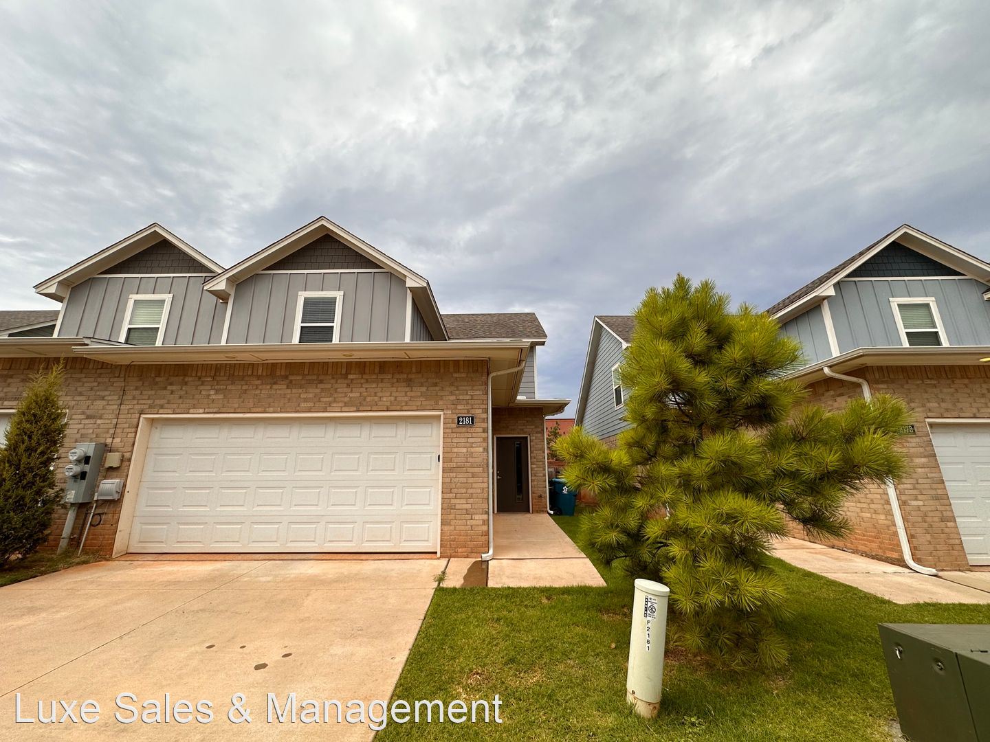 Beautiful Duplex In Edmond * 3/2/2 with Lawn Care Included (15th & Sante Fe) - Contemporary design inside and out, easy to maintain and super cute! Lawn Care is included in the HOA. Luxury finishes such as quartz counters, luxury vinyl wood look flooring, and carpet in the bedrooms. Kitchen has stainless steel appliances, ceiling fans, blinds on windows and LED lighting throughout. Open concept kitchen, living, dining includes large peninsula island and plenty of cabinets, large laundry room w/ pantry storage, plus some under stair storage. Half bath, master bedroom and master bathroom suite downstairs. There is also a private entrance to small fenced yard with patio. Upstairs are 2 bedrooms with landing space and shared hall bath with tub/shower. Energy Efficient...save lots in utility cost with tankless hot water heater, high efficiency gas furnace, programmable zoned thermostats for up and downstairs, LED lighting PLUS more.